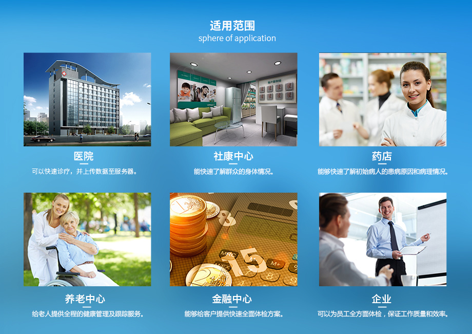 拓展功能:定制型產(chǎn)品可拓展如下檢測項目:中醫(yī)體質(zhì)辨識、B超(全數(shù)字超聲診斷儀) 。